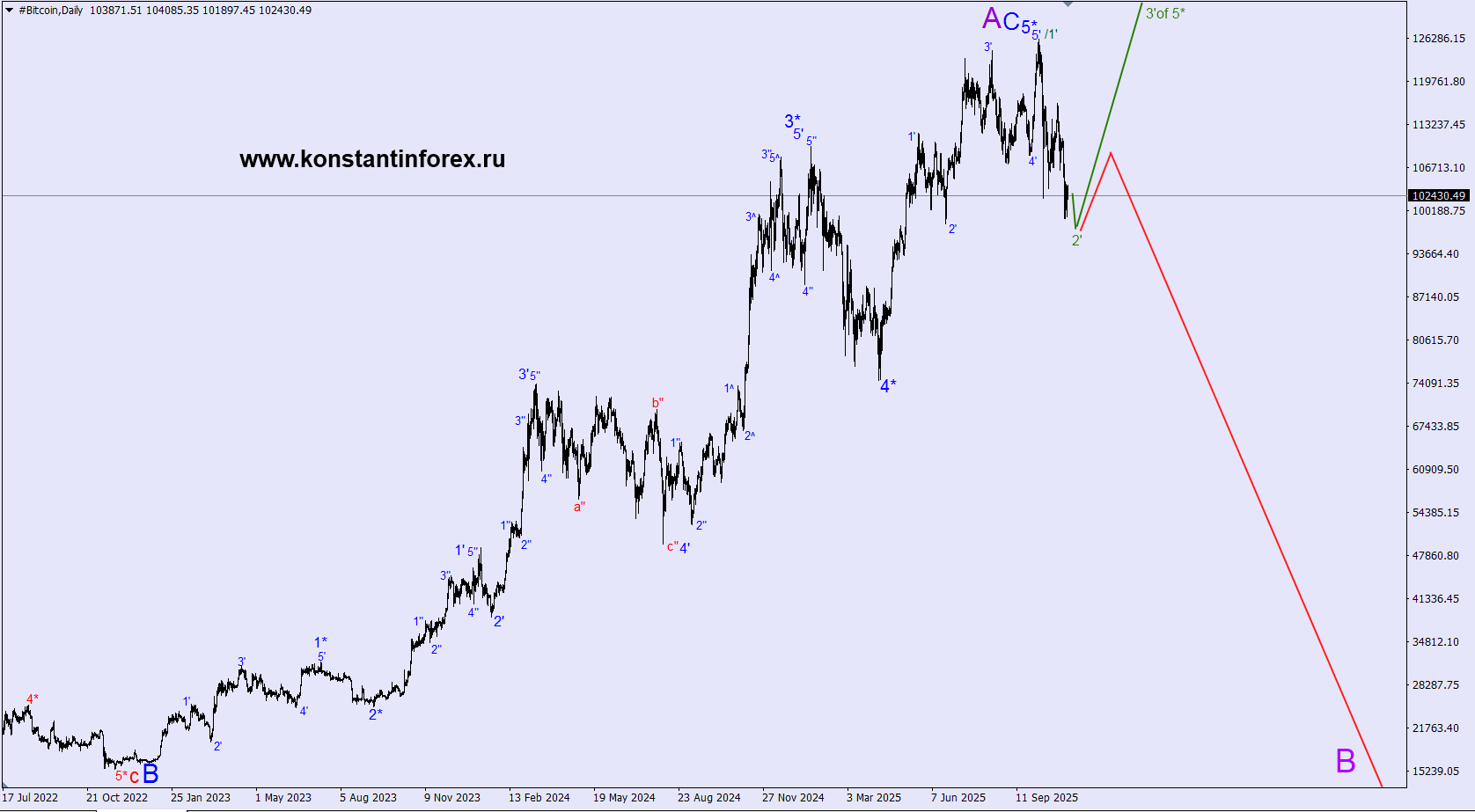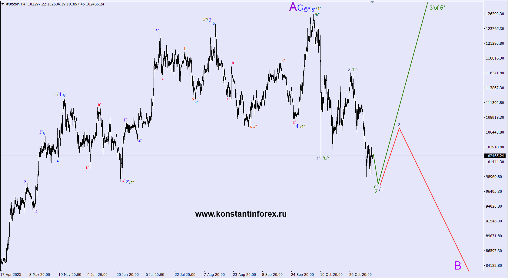 С точки зрения волнового анализа ситуация на Bitcoin краткосрочно-среднесрочно разнонаправленная (см. аналитику от 09.11.25).