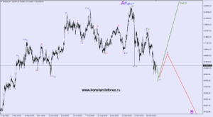Зеленый вариант – близка к завершению волна 2’of 5*of С of A