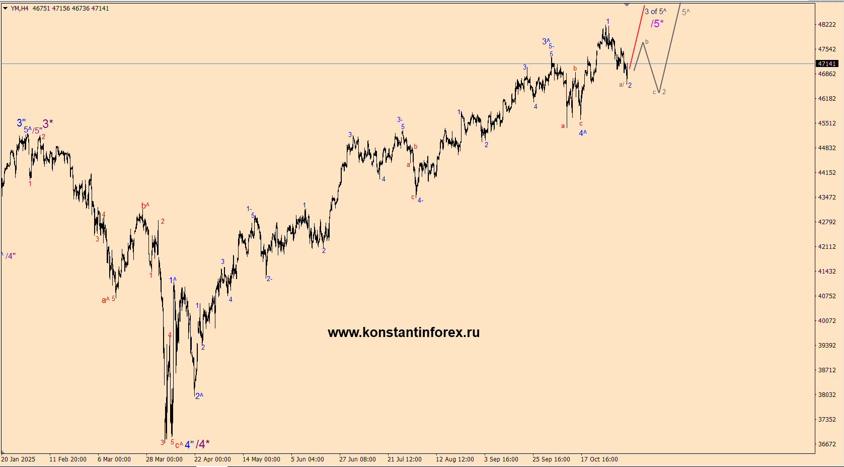 С точки зрения волнового анализа ситуация на Доу краткосрочно смотрит наверх (см. аналитику от 09.11.25).